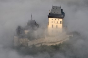 20.08. Hrad Karlštejn zalitý ranní mlhou. Foceno cestou z Kladna (LKKL) do Benešova (LKBE) ze Zlínu Z-43 OK-FOH.