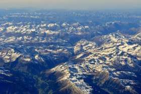 Pohled na Dolomity při charterovém letu Travel Service Praha - Gran Canaria