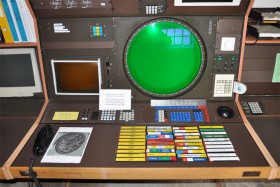 Starší vystavený radarový pult z Malmö Air Traffic Control Center